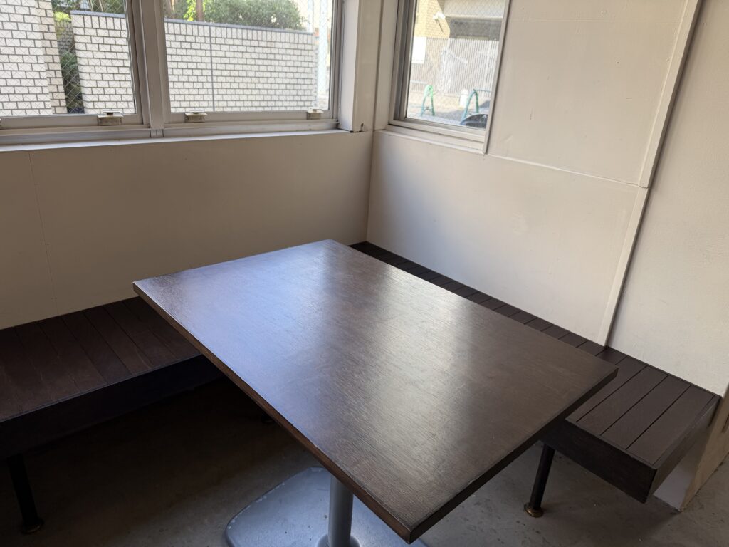 Because the building was originally a clinic, the ceilings are high and the space feels open. Tables are placed with generous distance between them, and there are many different types of seating: a big communal table, two-person tables, a bench by the window and counter seats. It’s designed so that both solo guests and groups can feel comfortable.