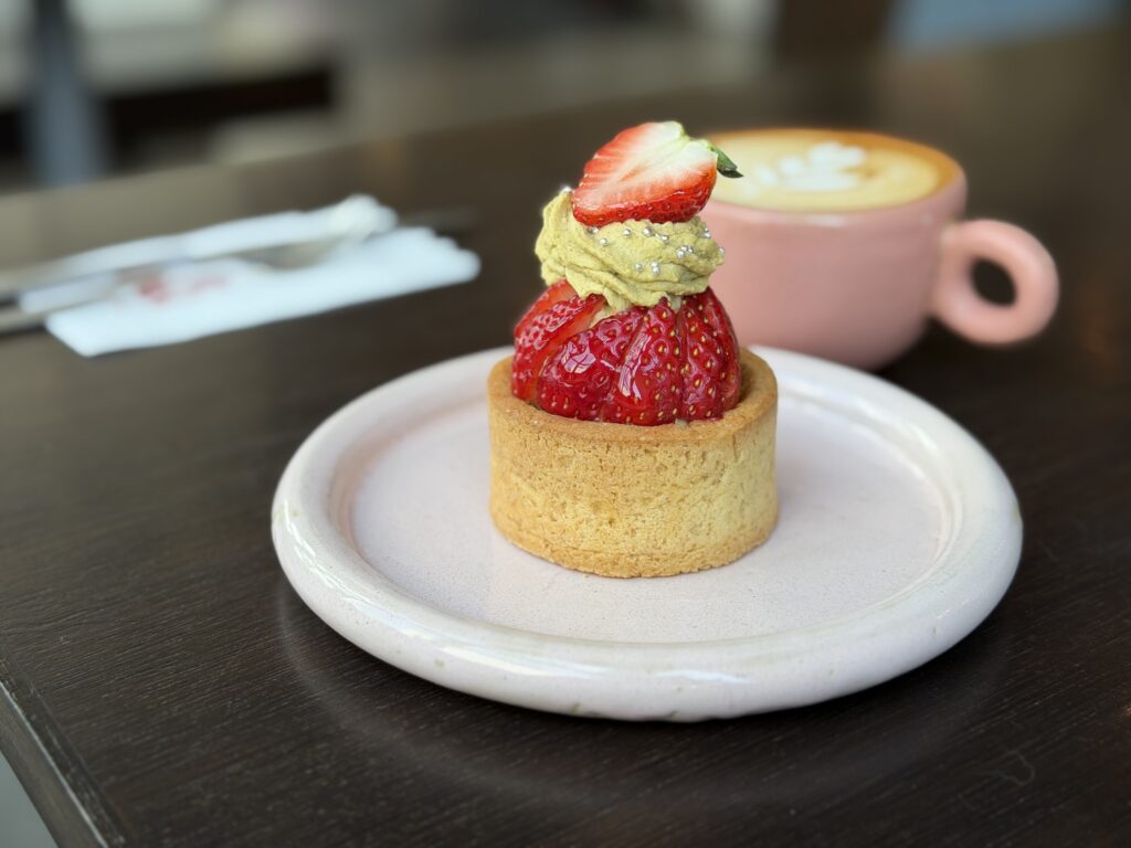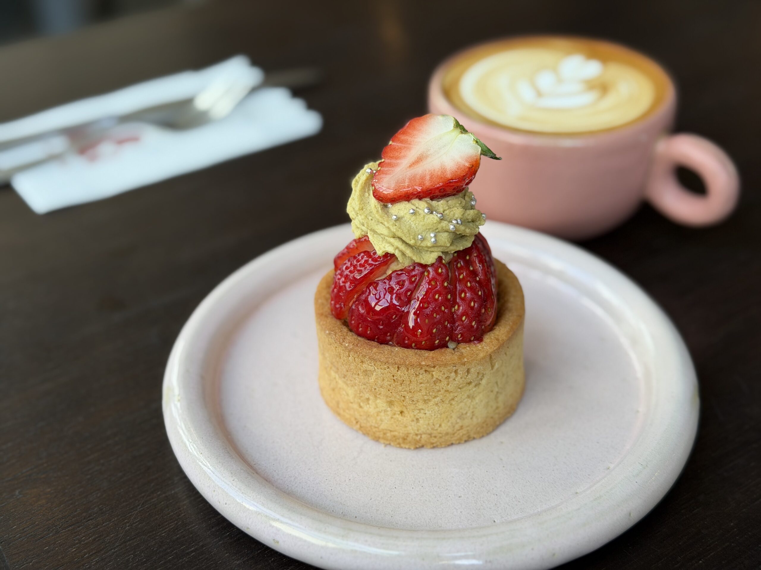 I chose the strawberry tart with pistachio cream. The crust was crisp and fragrant, topped with gently sweet cream and juicy, tangy strawberries. It paired beautifully with the coffee.