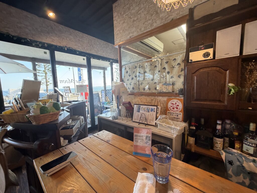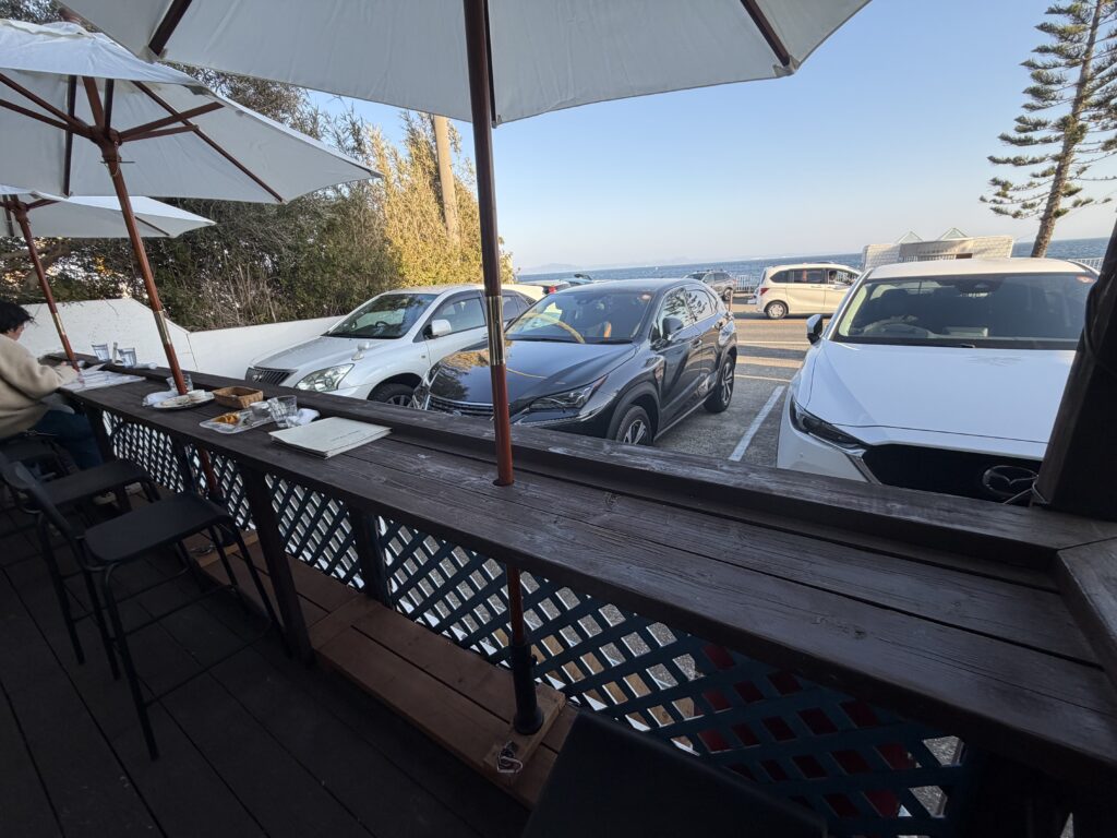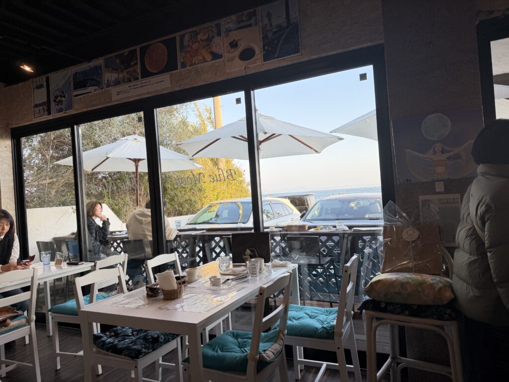 The café sits right along Route 134, directly facing Tsukuihama Beach.