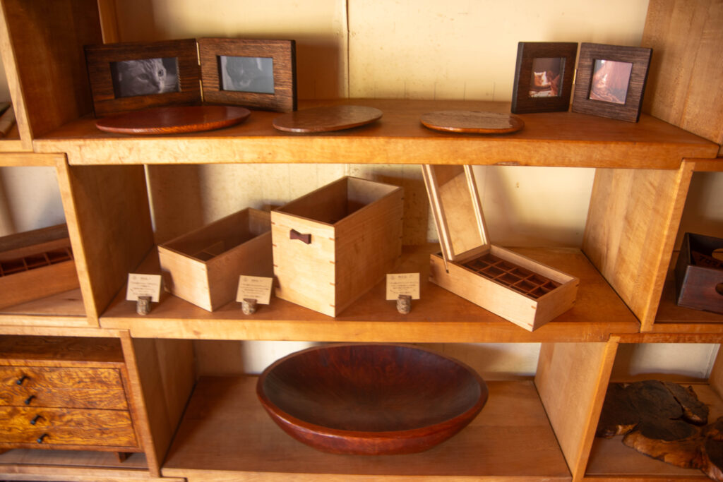 葉山ウッドワークスのショップには、木工塾だけでなく、かわいらしい木の小物も展示・販売されています。