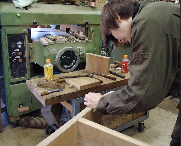 最初は道具の名前も分からなかった生徒さんが、少しずつ自分の家具を形にしていく。