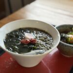 スープはさっぱりした醤油ベースで、そこに海藻の旨みとめかぶのとろみが加わり、まるで出汁のような味わいになります。