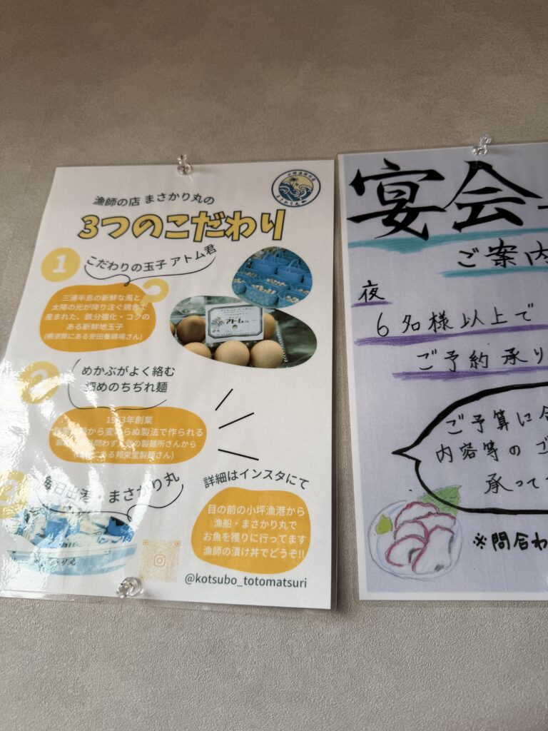 “Fisherman’s Restaurant Masakarimaru,” located right in front of Kotsubo Fishing Port.