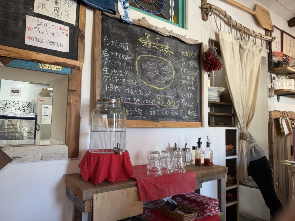 At Miurase, pizzas are baked quickly in a wood-fired oven using firewood sourced from the Miura area.