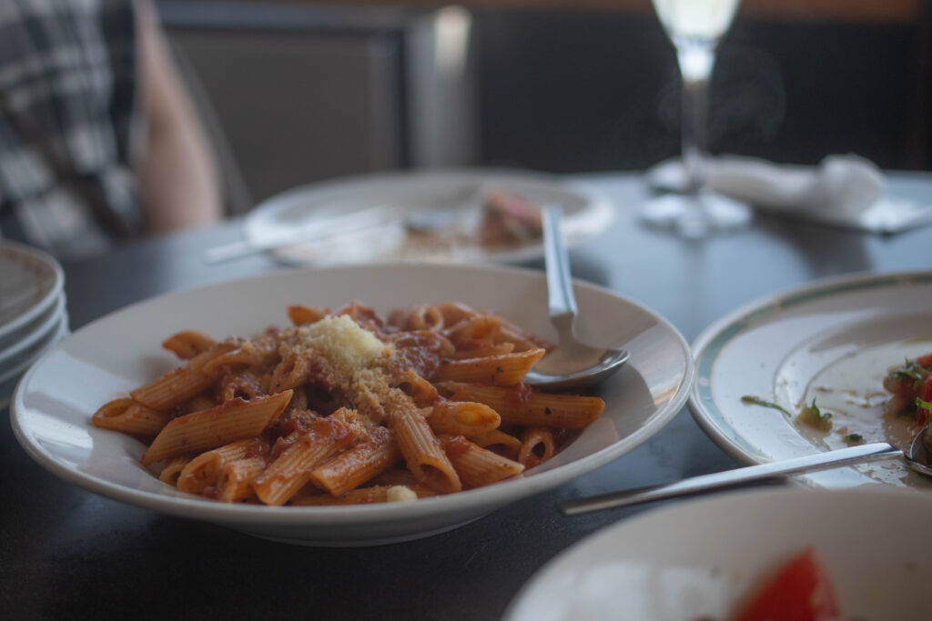 The menu includes mild-flavored pasta and risotto, making it easy to share dishes with little ones.