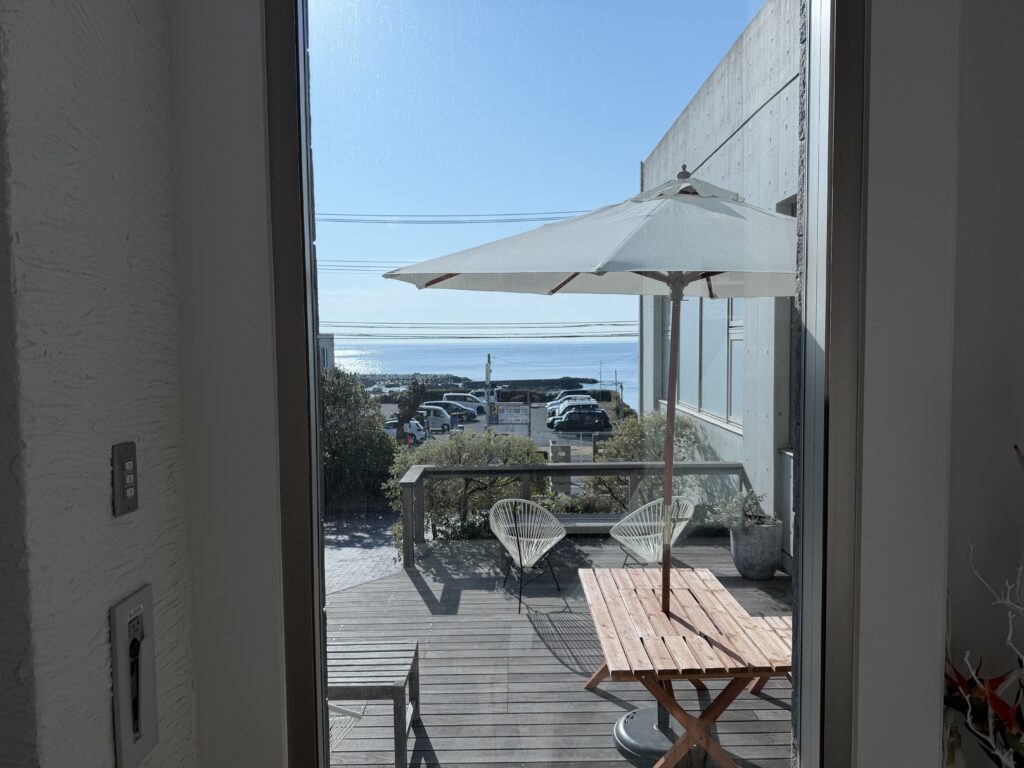 a rare cafe where you can truly relax while looking out at the ocean.