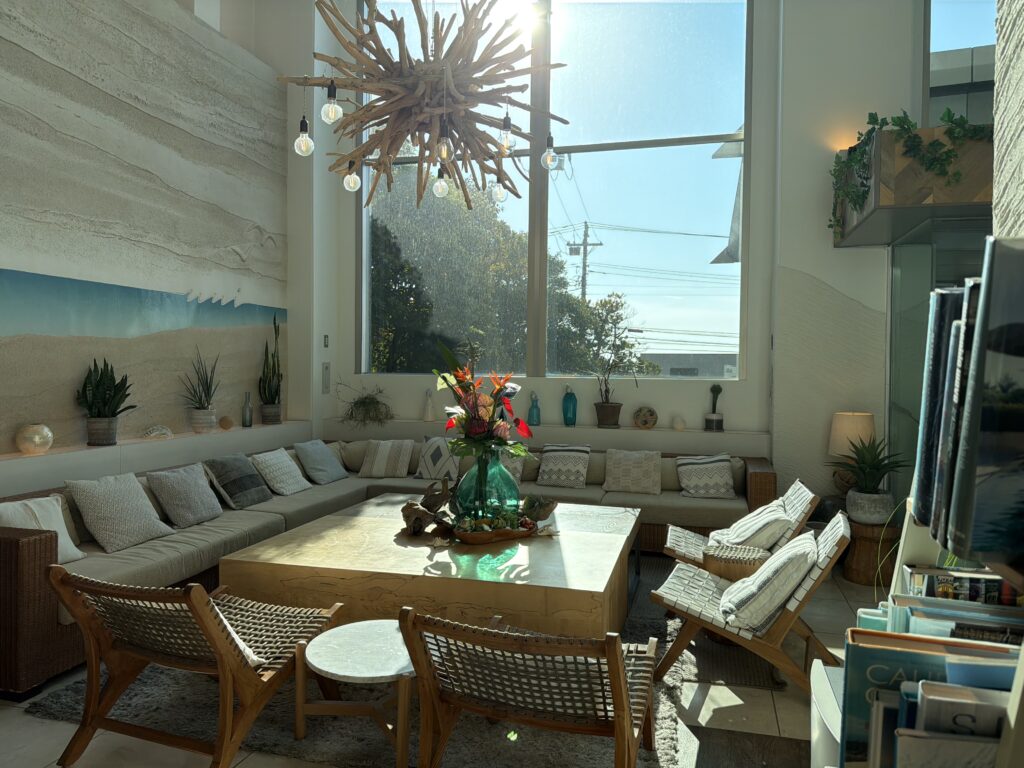 Natural materials like driftwood blend beautifully into the interior, creating a calm, Hayama-style atmosphere.